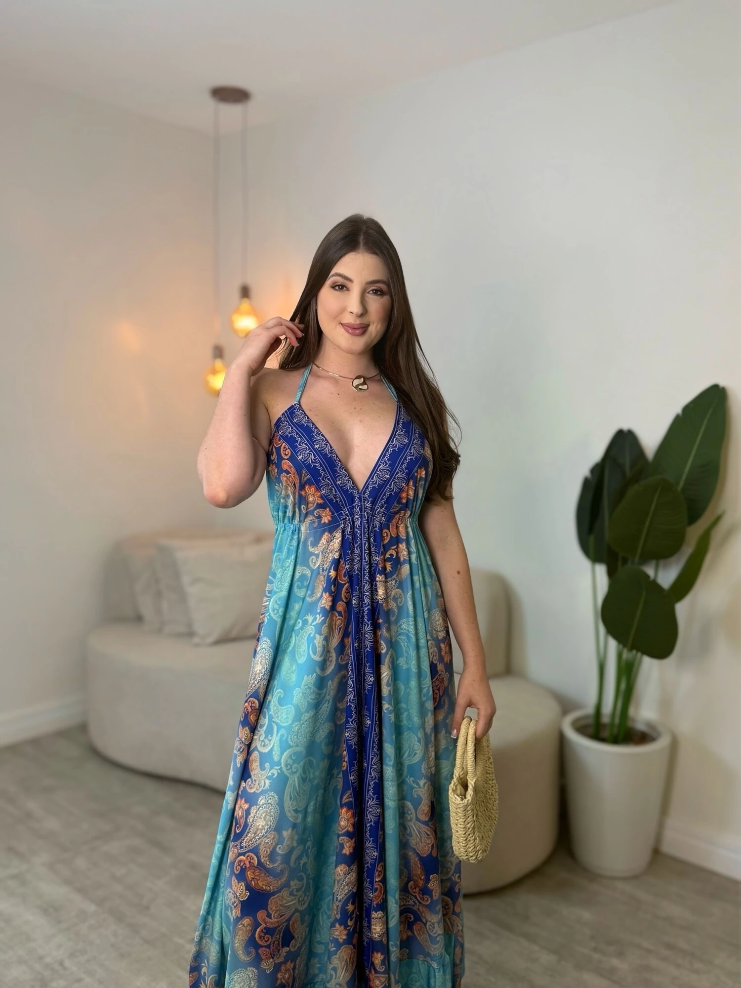Vestido Indiano Com Caimento Solto, e Amarração Nas Costas e Pescoço.