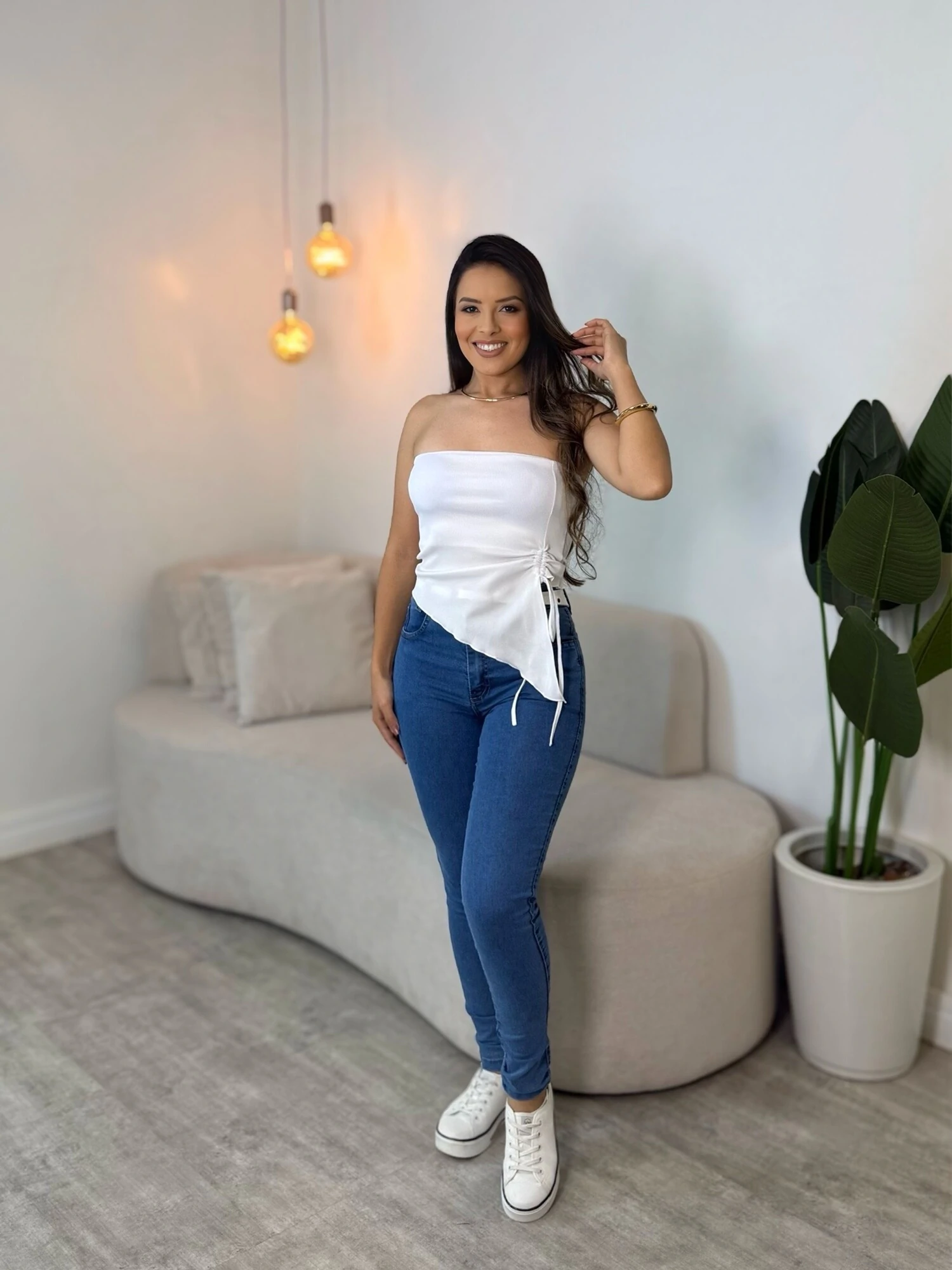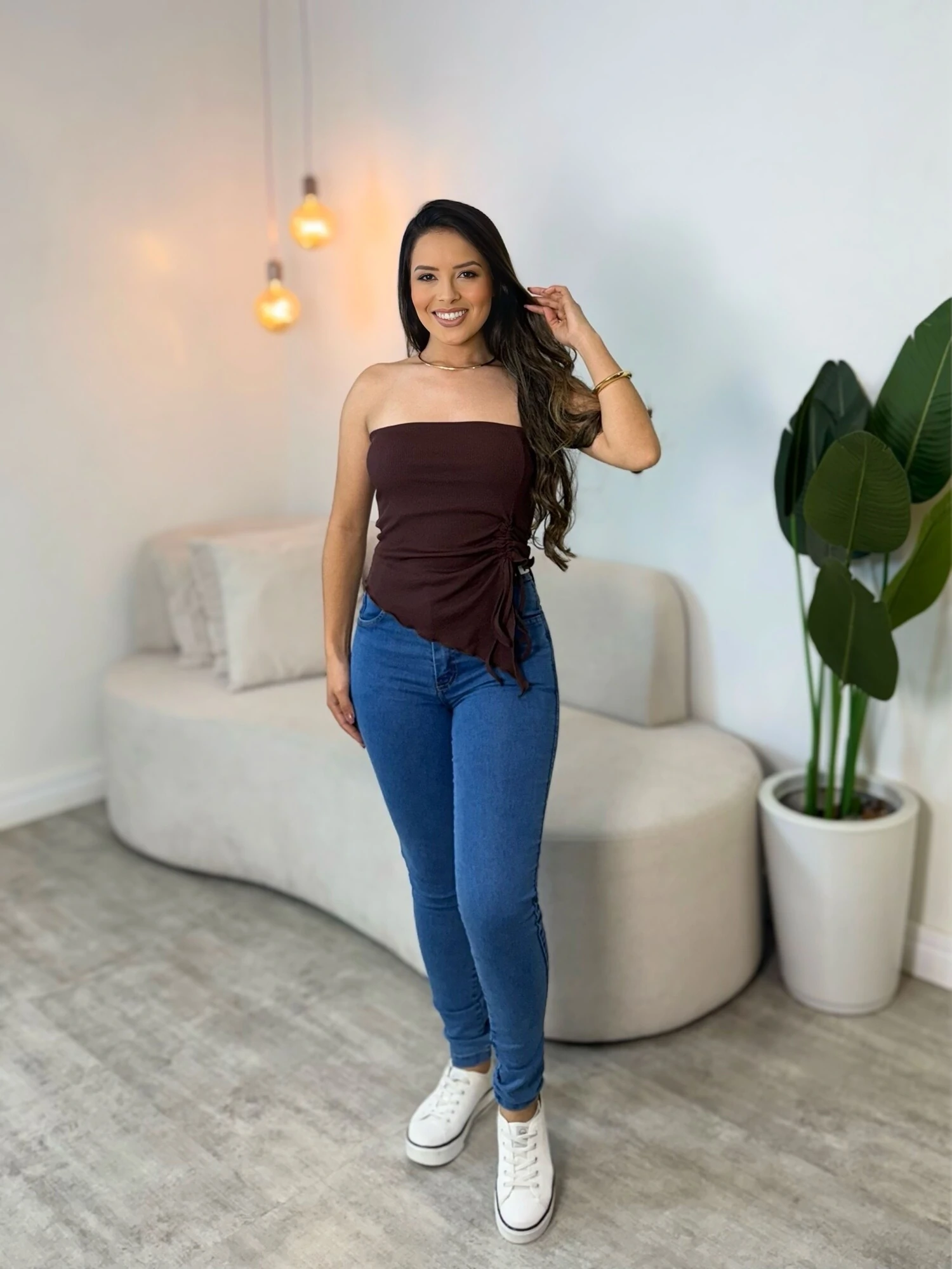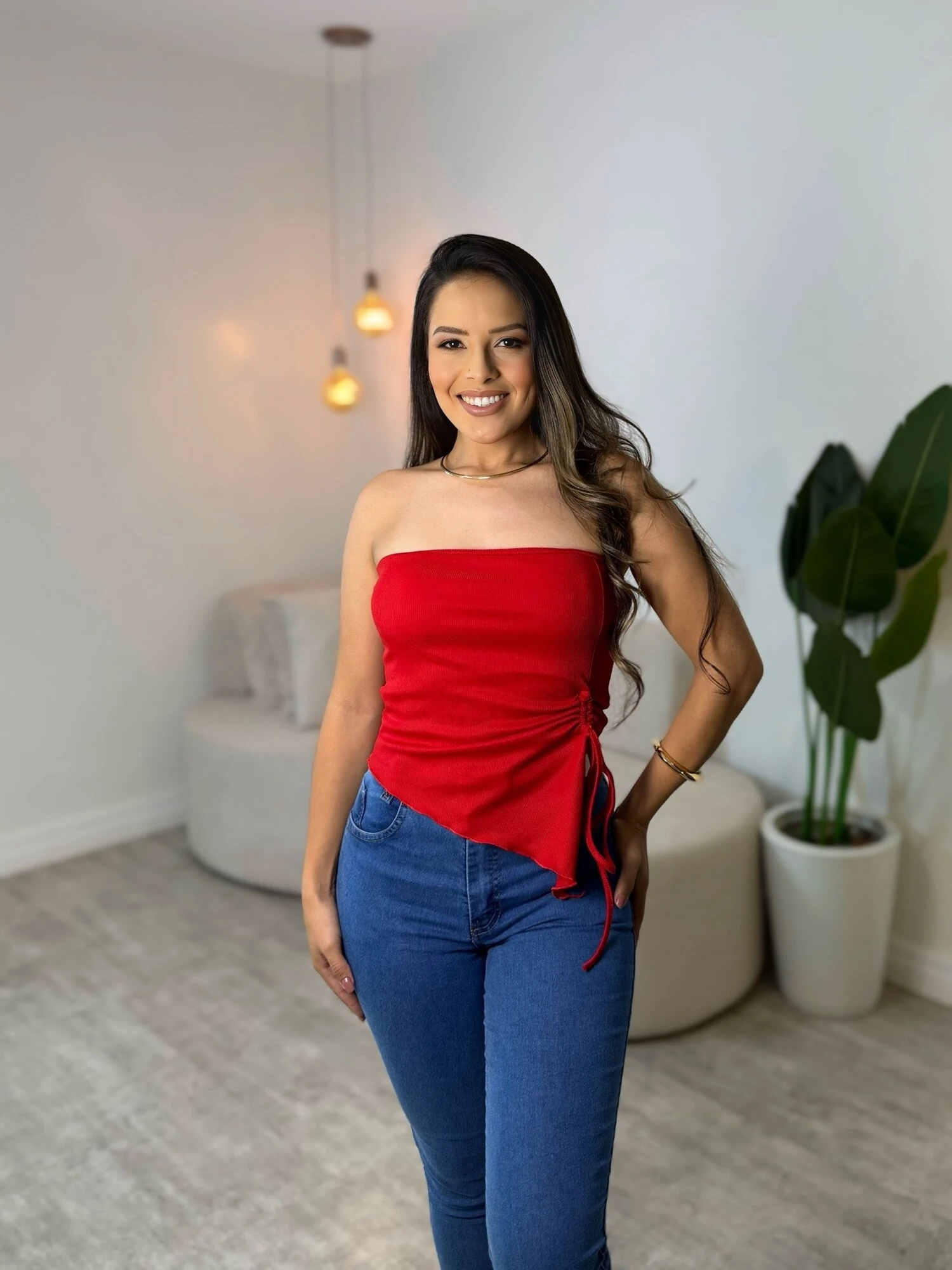 Possui Bojo, Estilo Tomara Que Caia, Possui Corte Assimétrico, Possui Detalhe Lateral Para Ajuste.