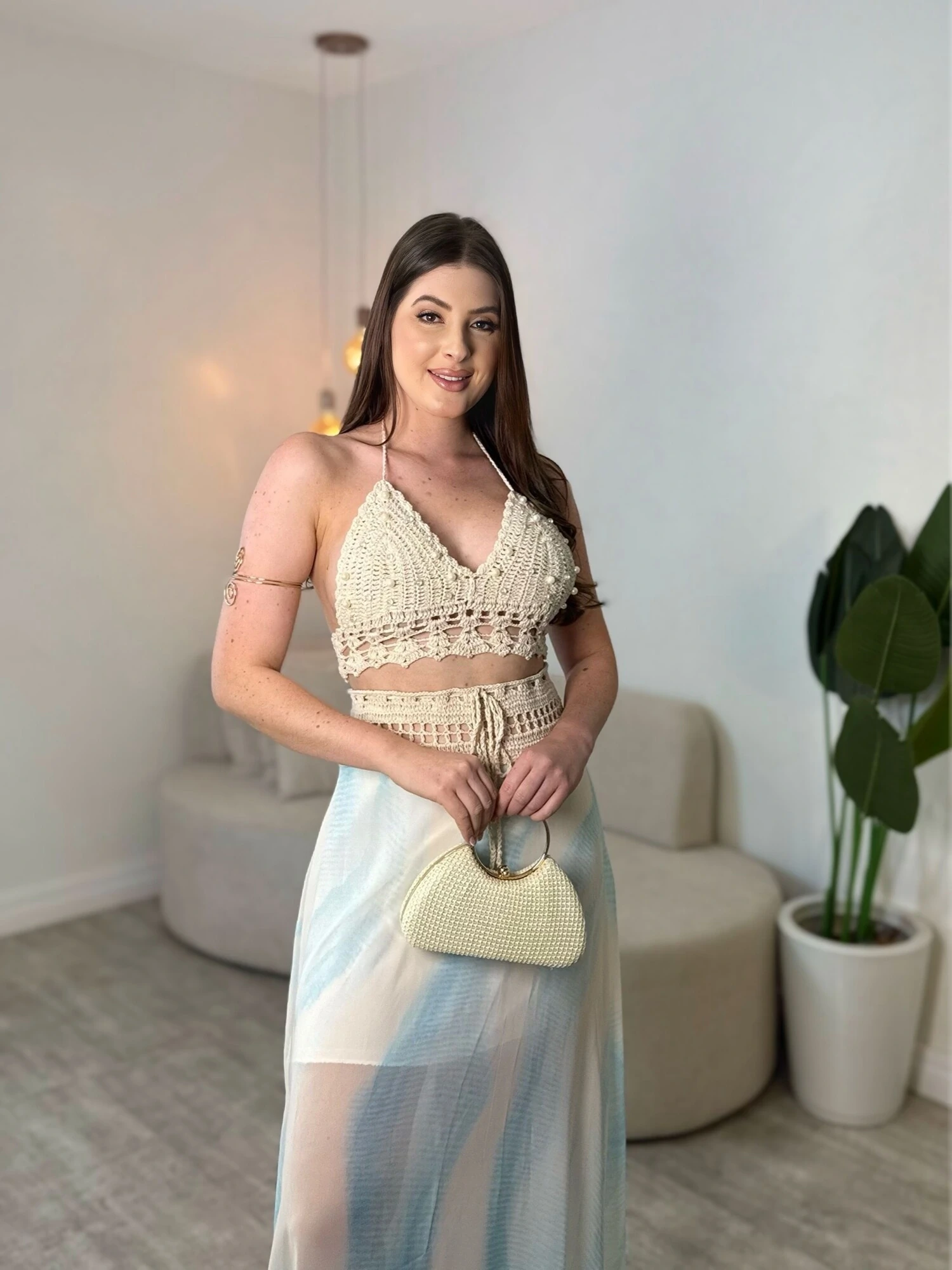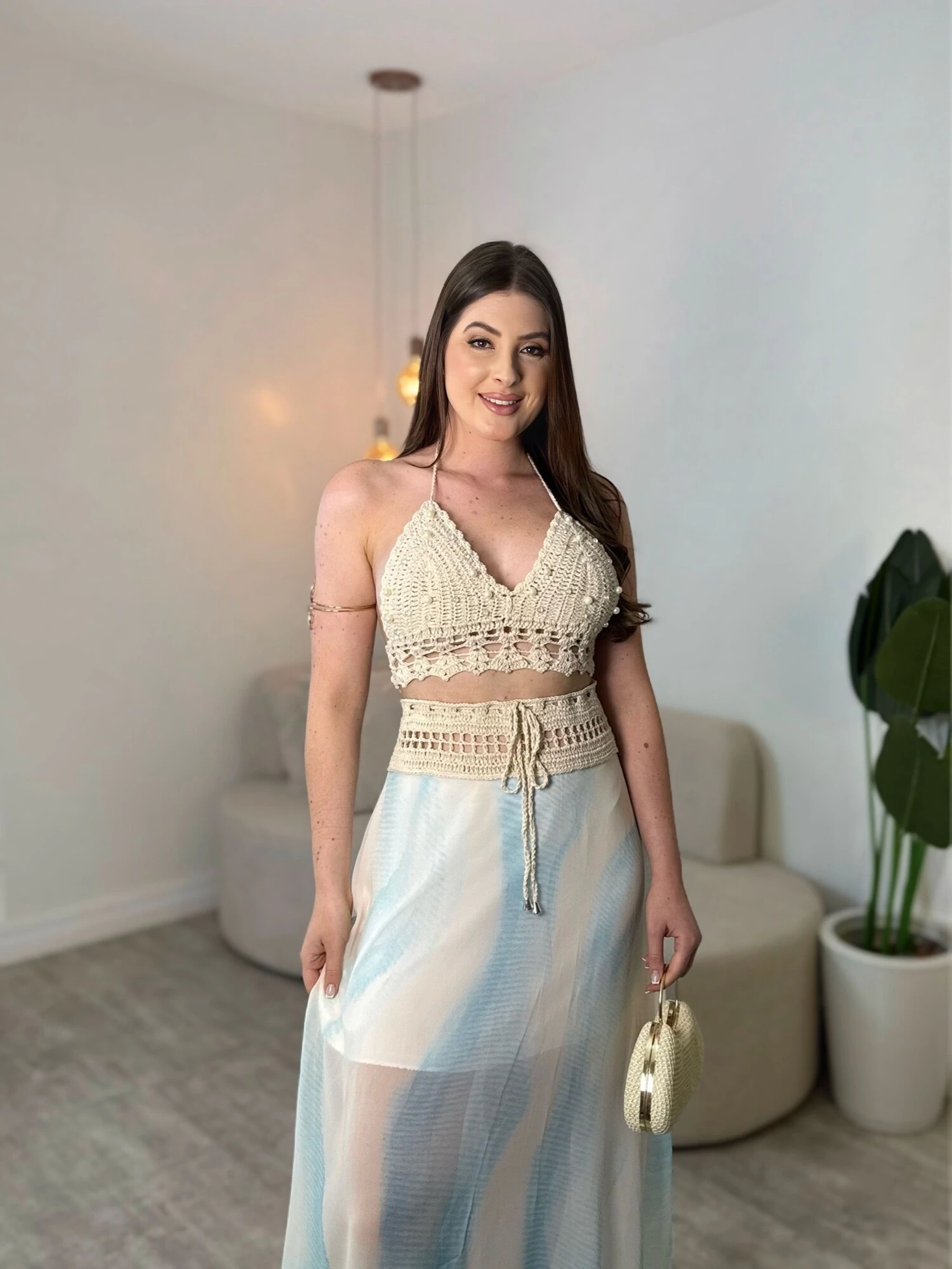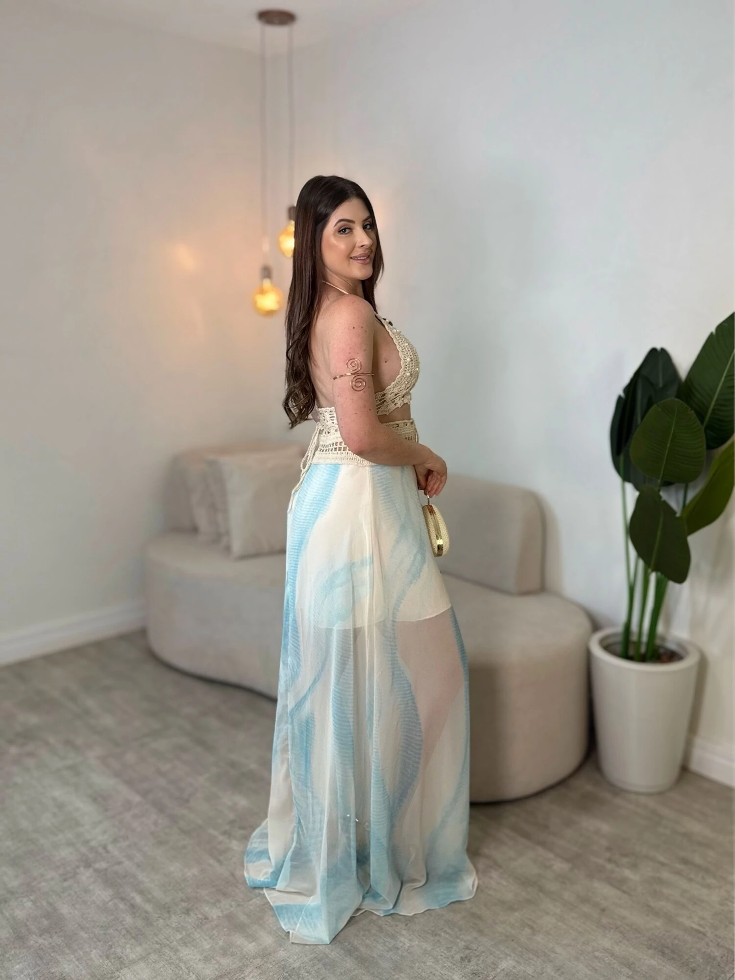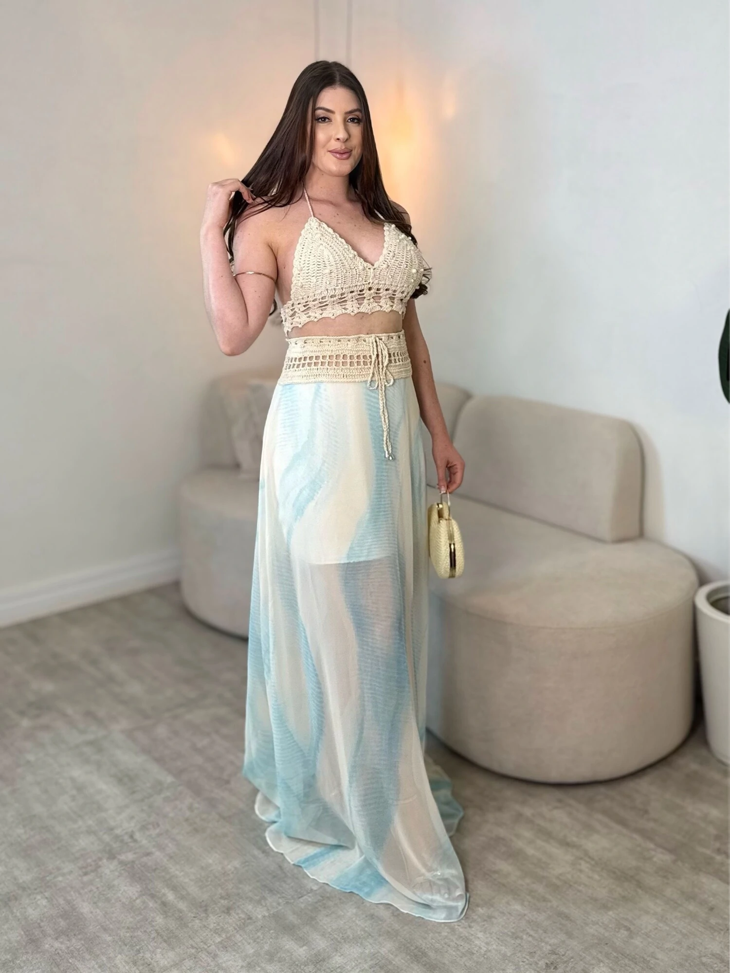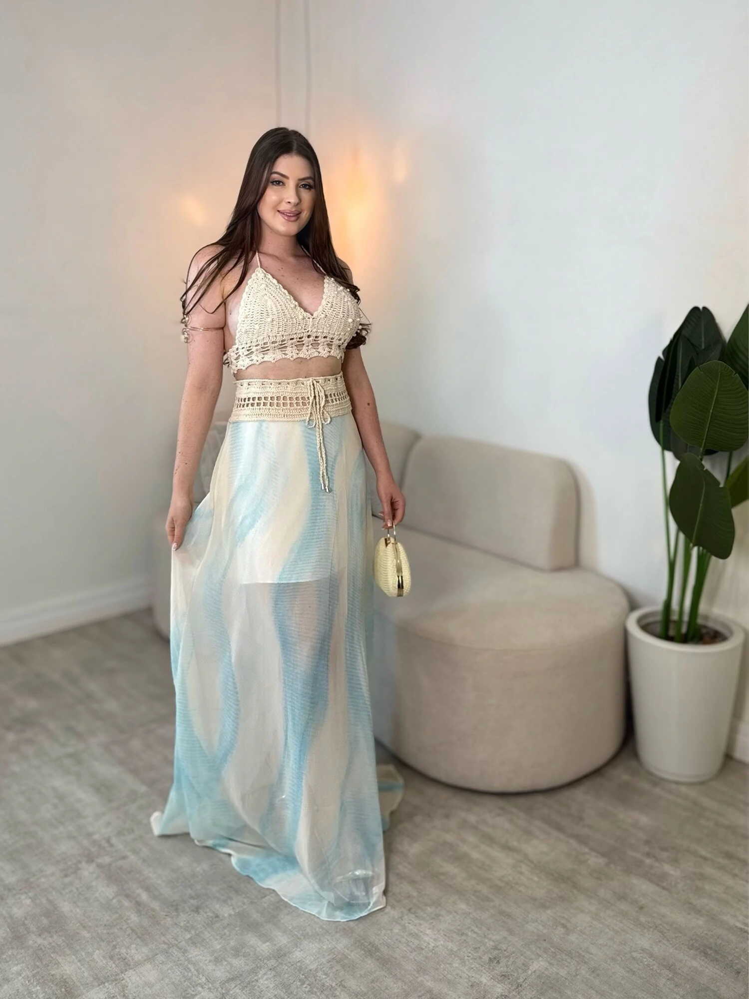 Saia Longa, Possui Amarração Para Ajuste Na Cintura, Não Possui Fenda Lateral.