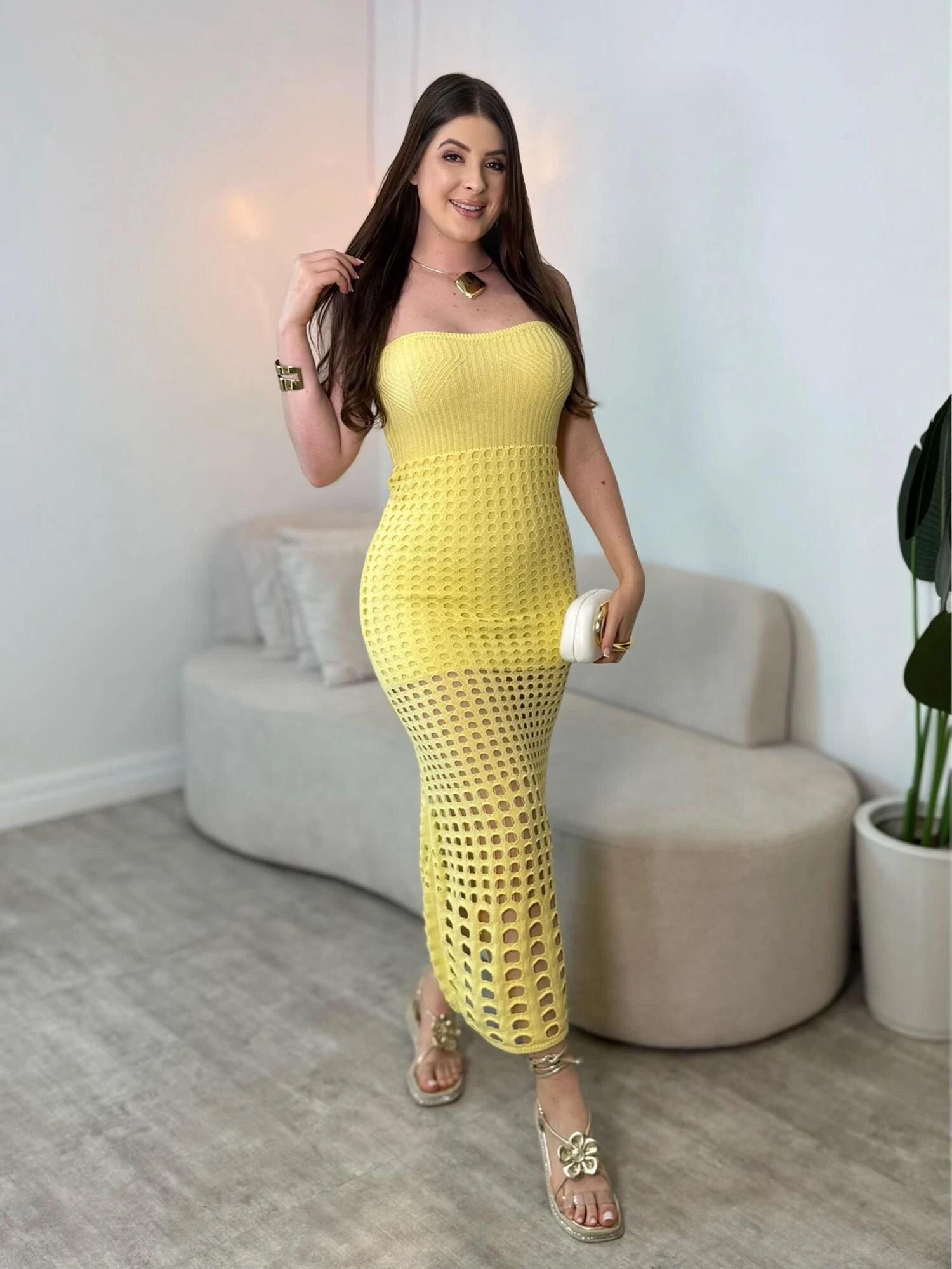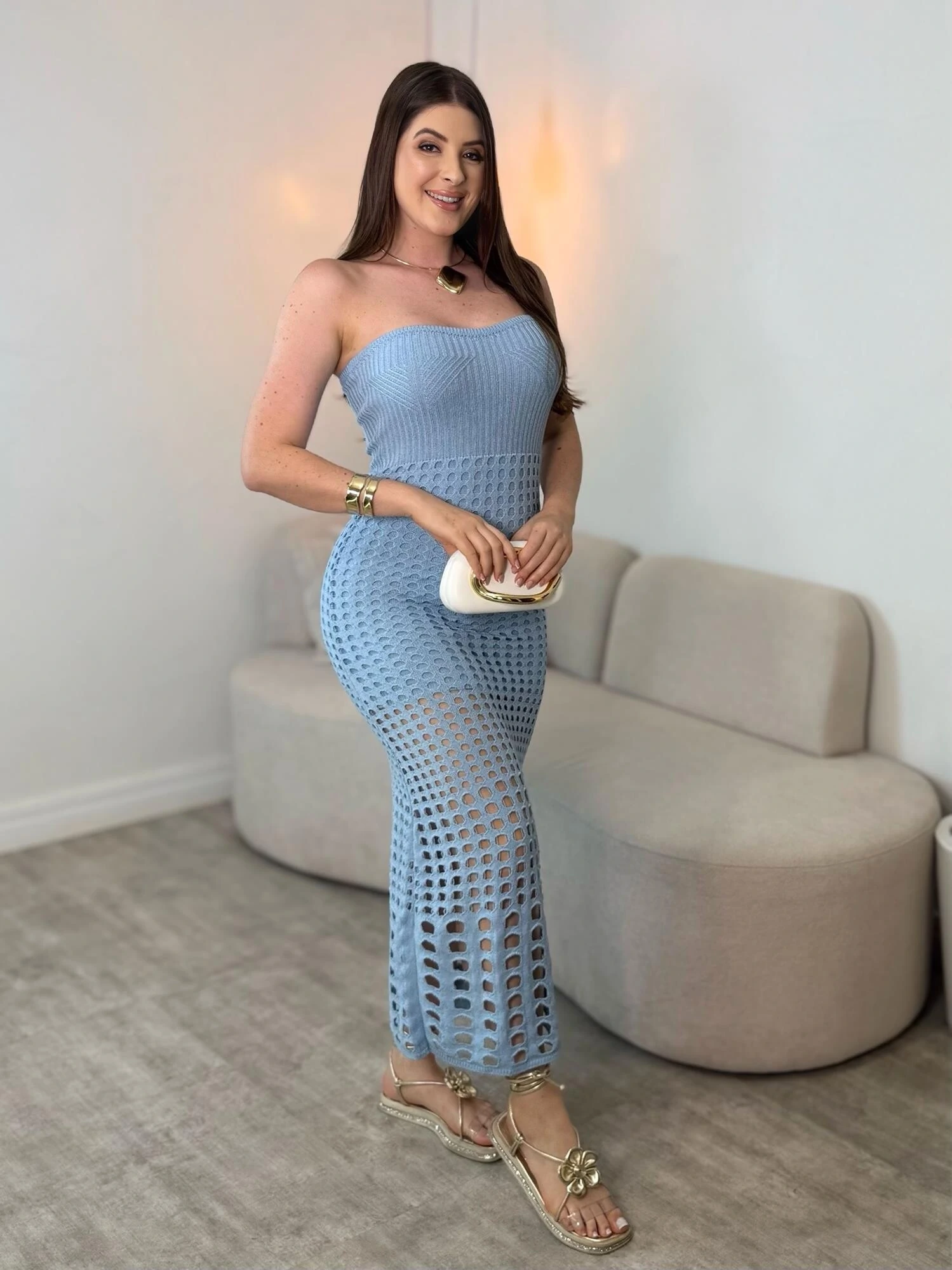 Não Possui Bojo, Estilo Tomara Que Caia, Vestido Longo, Não Possui Fenda.