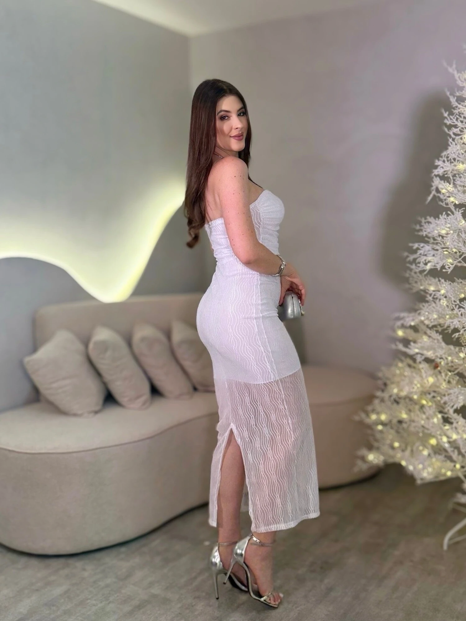 Vestido Midi, com bojo interno, forro interno e elástico no torax.