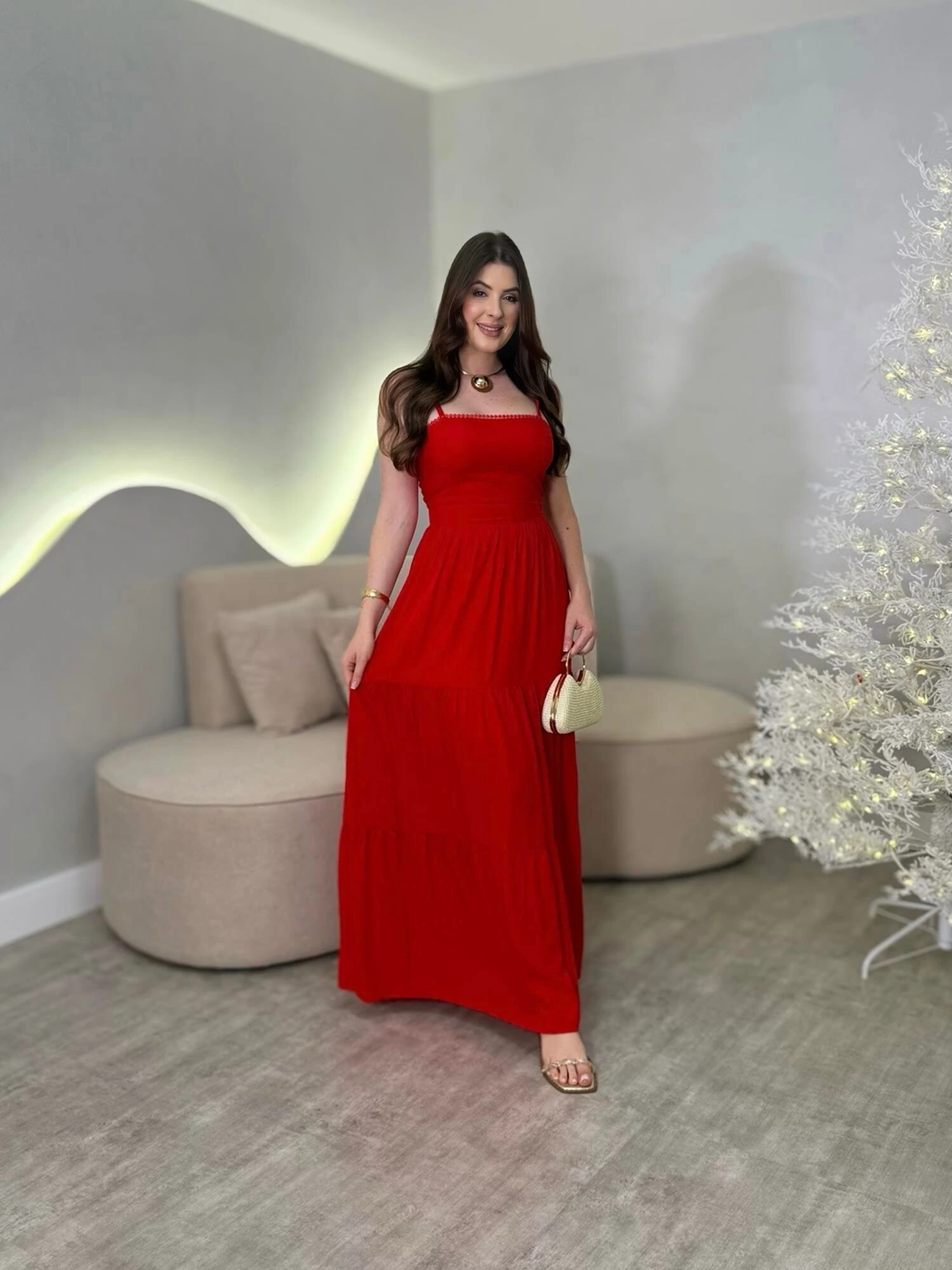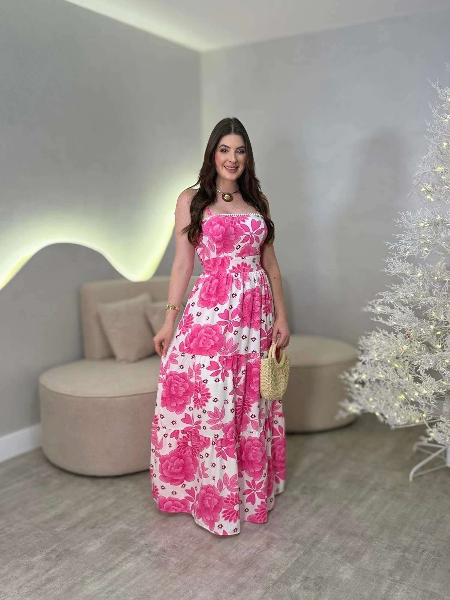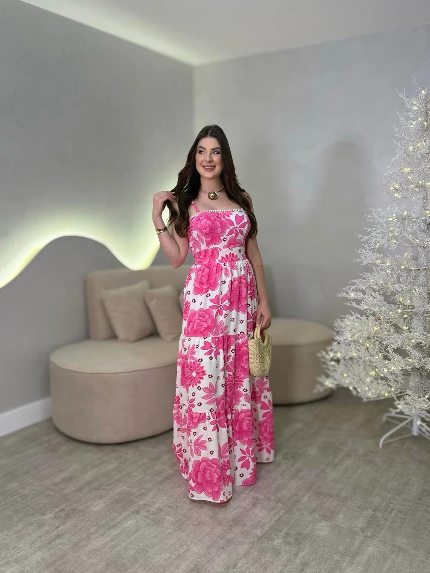 Vestido longo com bojo interno, alças ajustaveis, lastex nas costas, amarração na cintura. Modelagem solta.