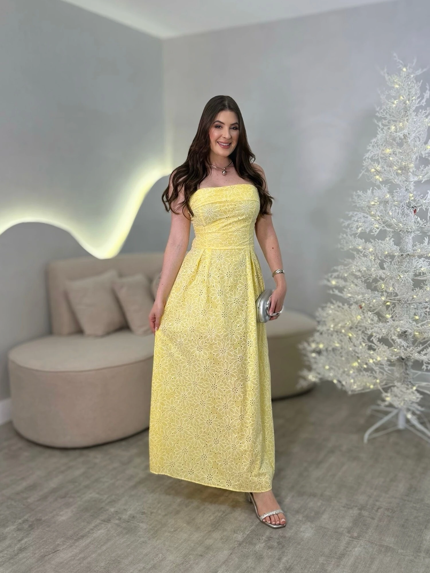 Vestido Longo Com Modelagem Mais Solta. Possui Forramento Interno Evitando Transparência Da Peça.