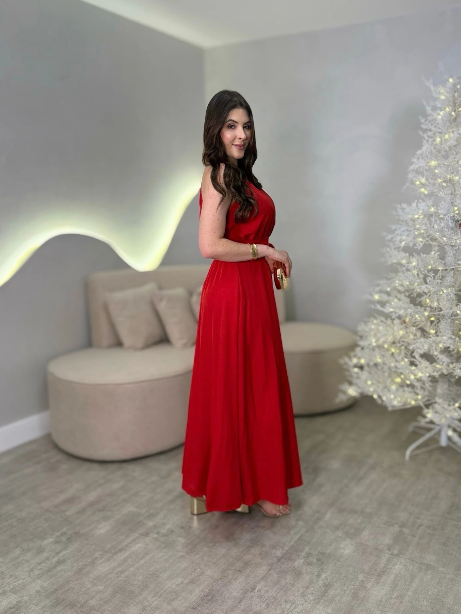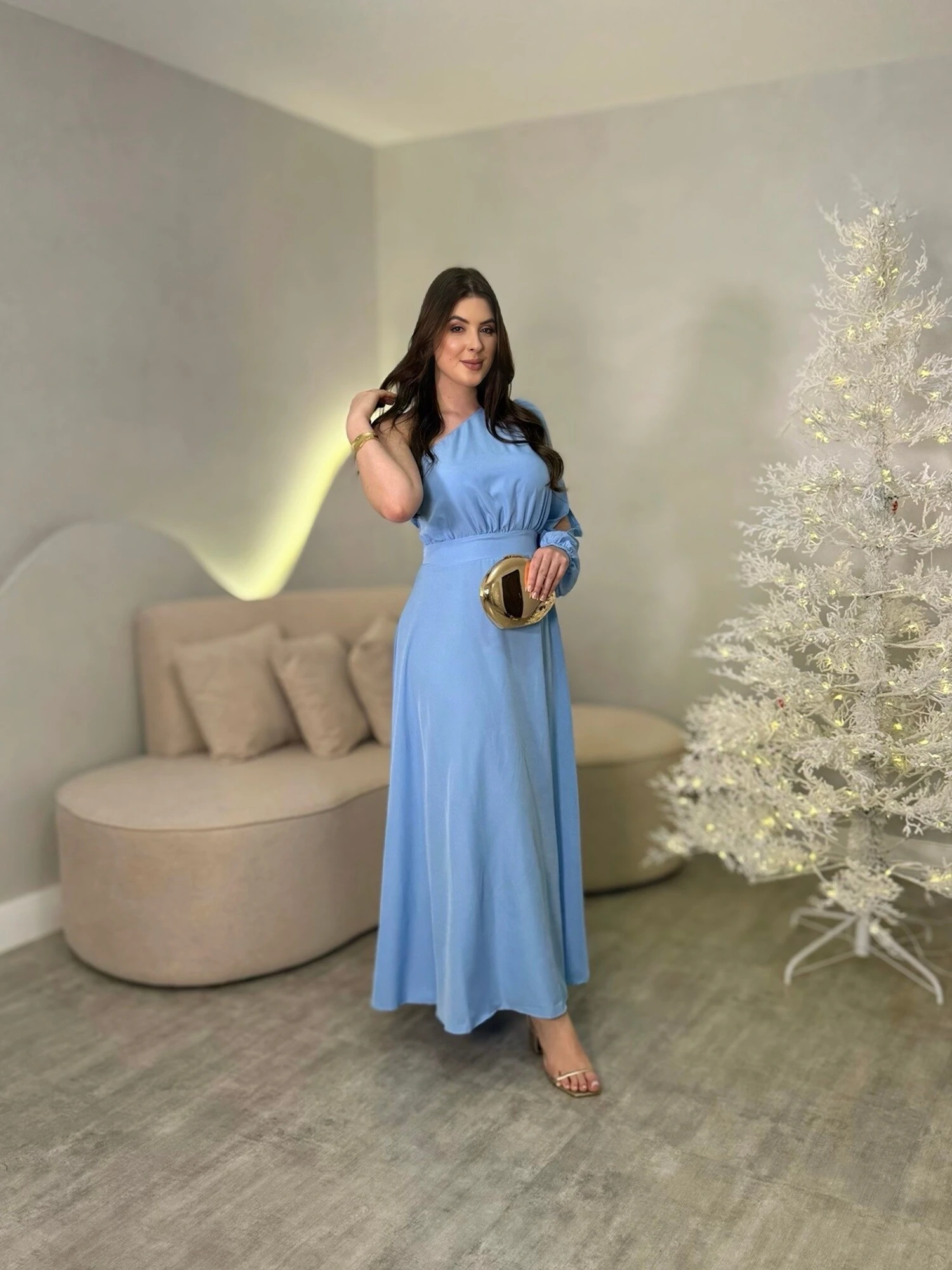 Vestido Longo Nula Manga. Modelagem Lisa e Básica. Manga Com Detalhe Aberto.