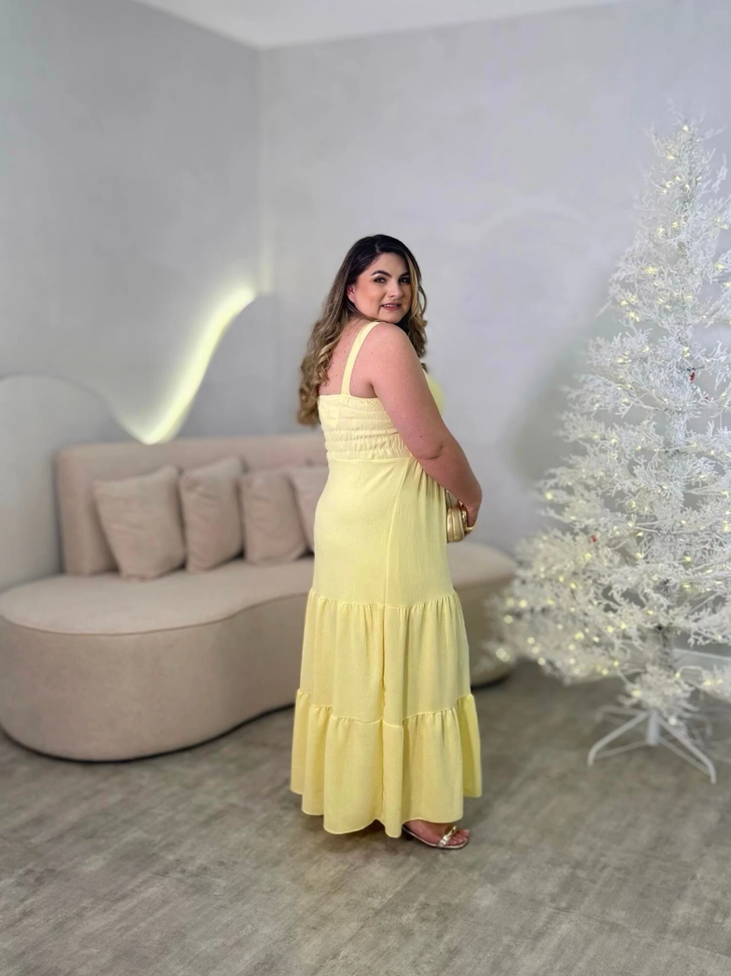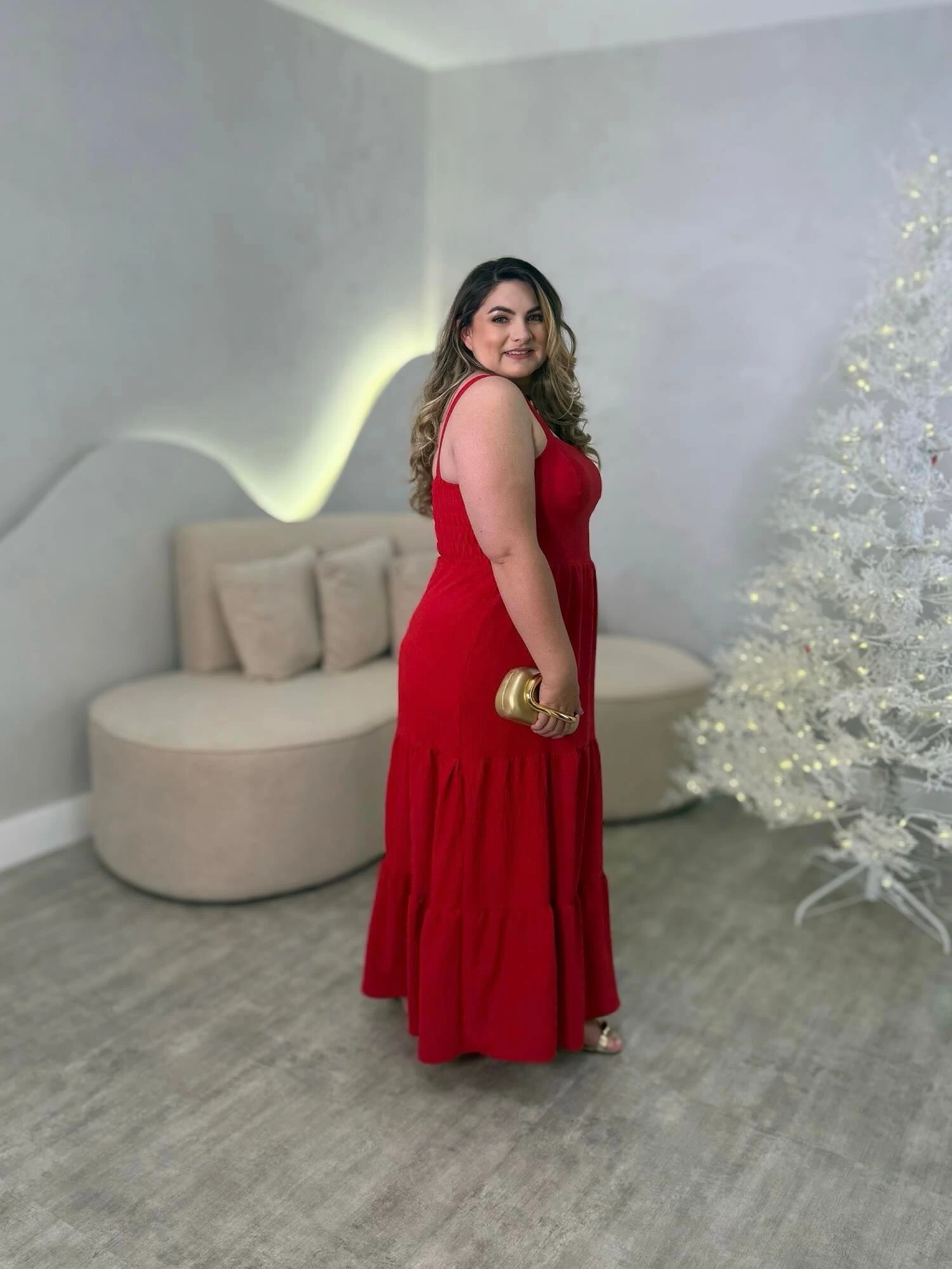 Vestido Longo Plus Size, Com Modelagem Mais Solta.