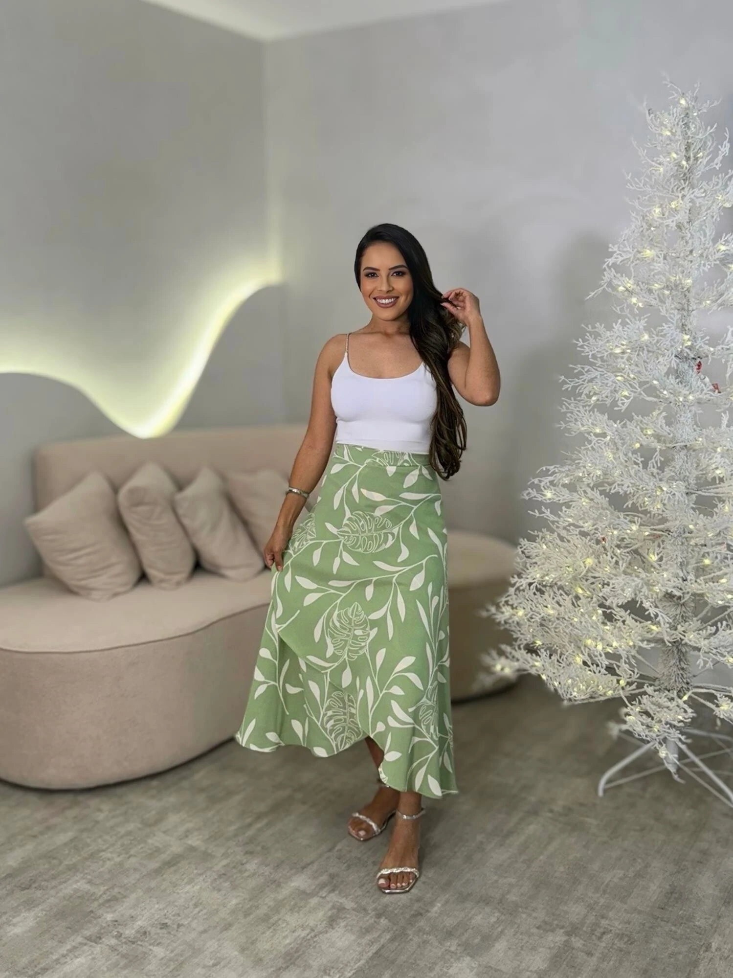 Saia Envelope Básica Midi, Com Amarração Na Cintura.