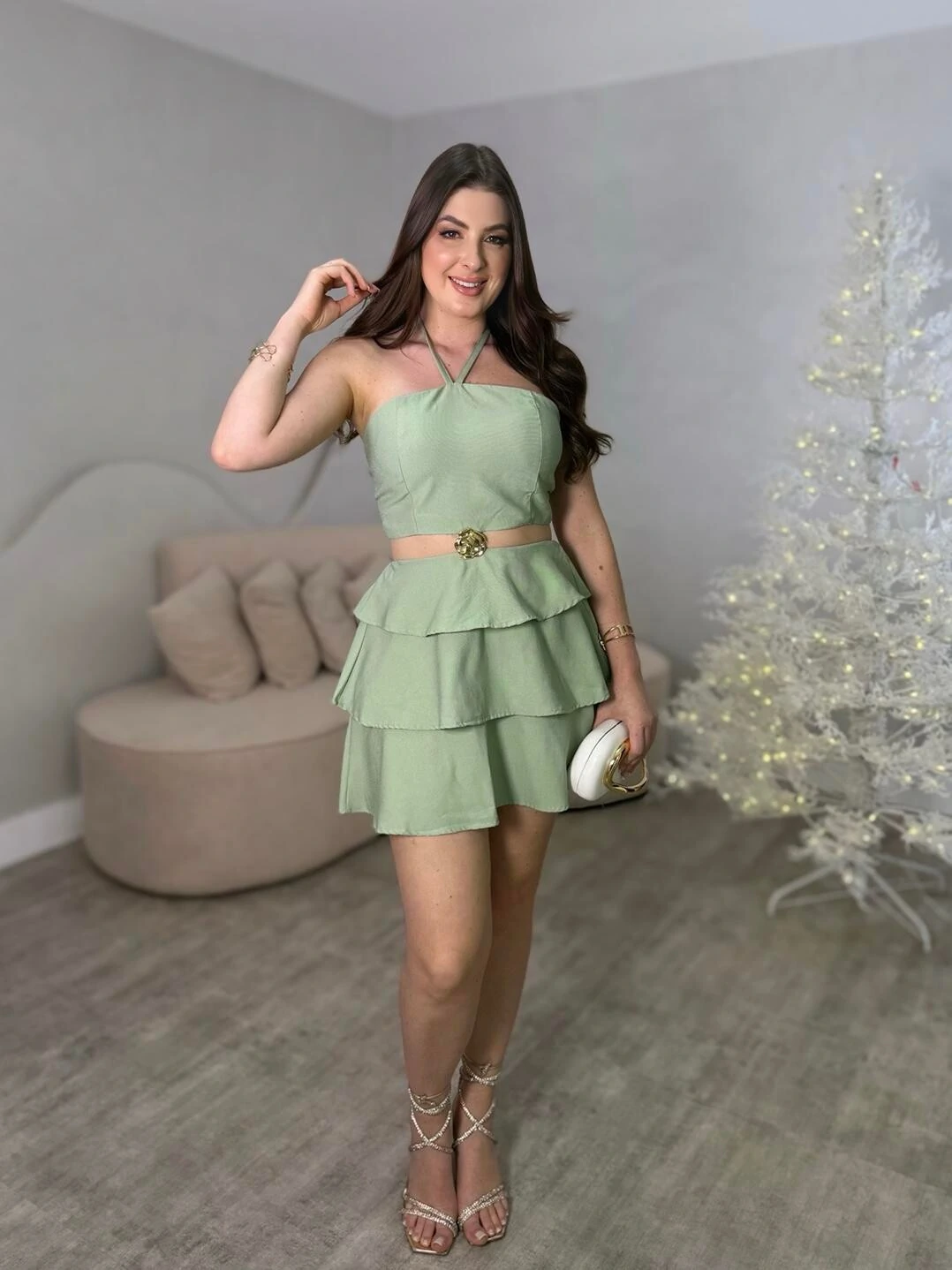 macaquinho curto, com bojo interno, com amarração no pescoço e nas costas. Possui abertura nas costas e na cintura, possui elastico nas costas. Modelagem soltinha.