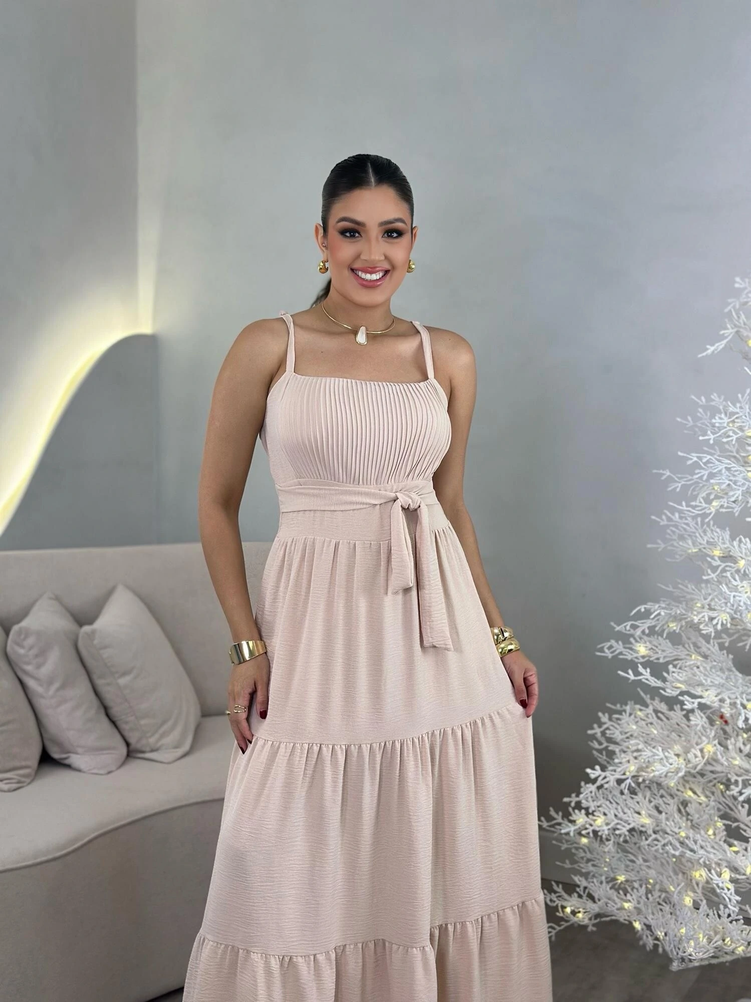 Vestido longo, com bojo interno, alças ajustaveis, lastex nas costas. Com forro interno, modelagem solta.