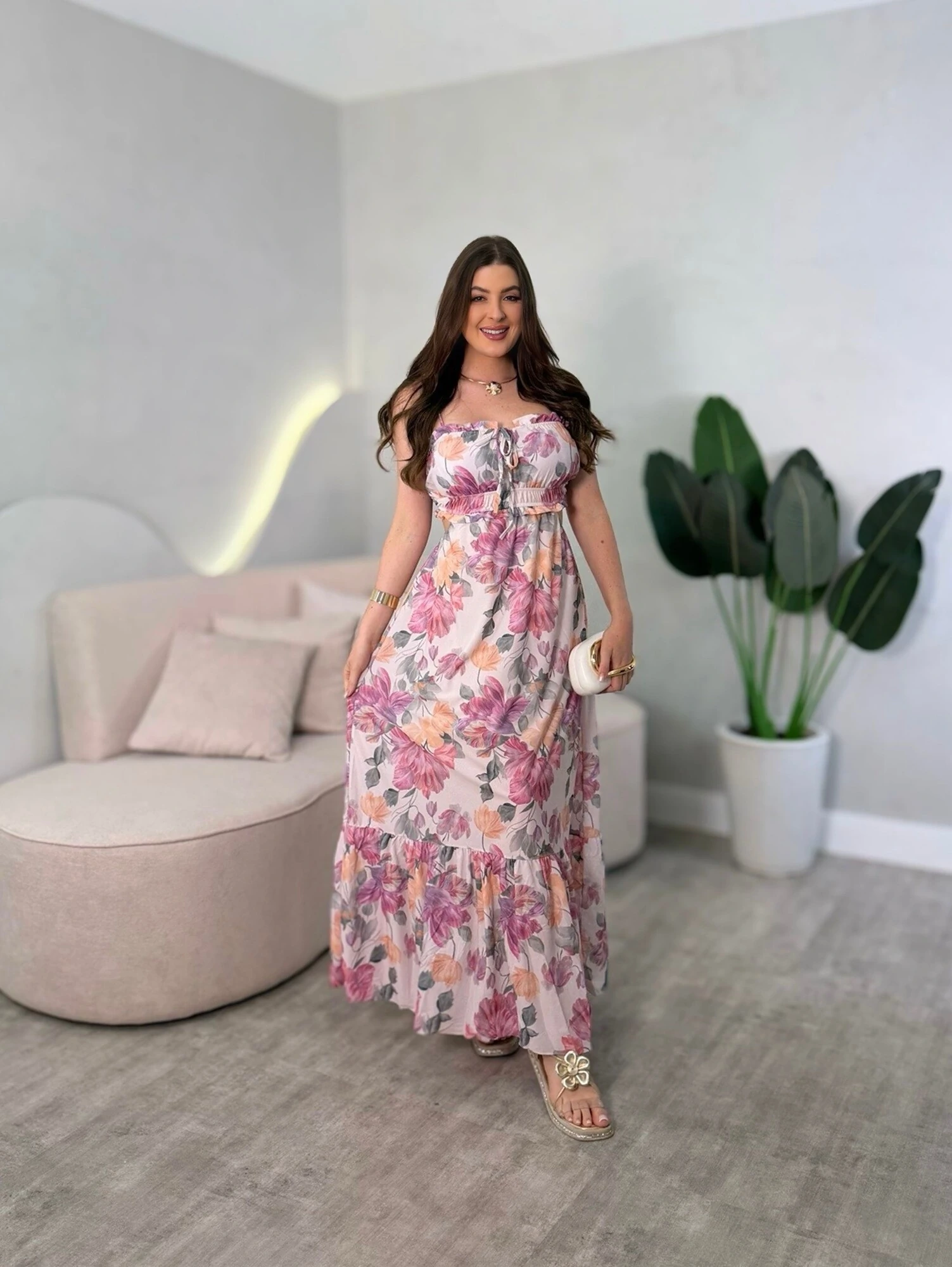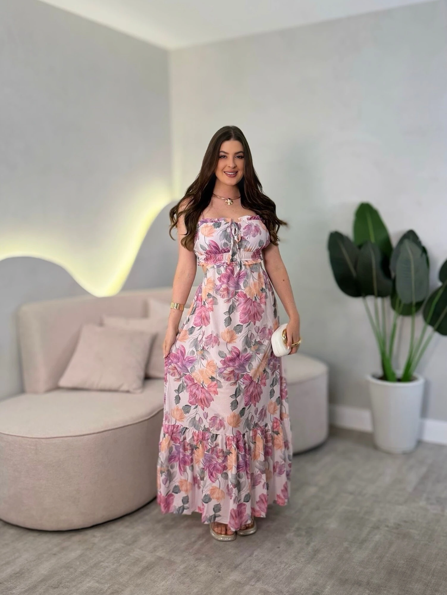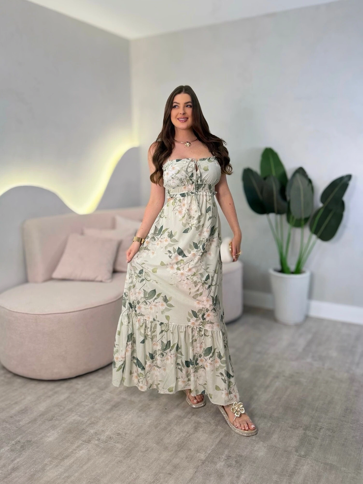 Vestido Longo Em Tecido Chiffon, Com Alta Elasticidade e Com Forramento Interno Evitando Transparência.