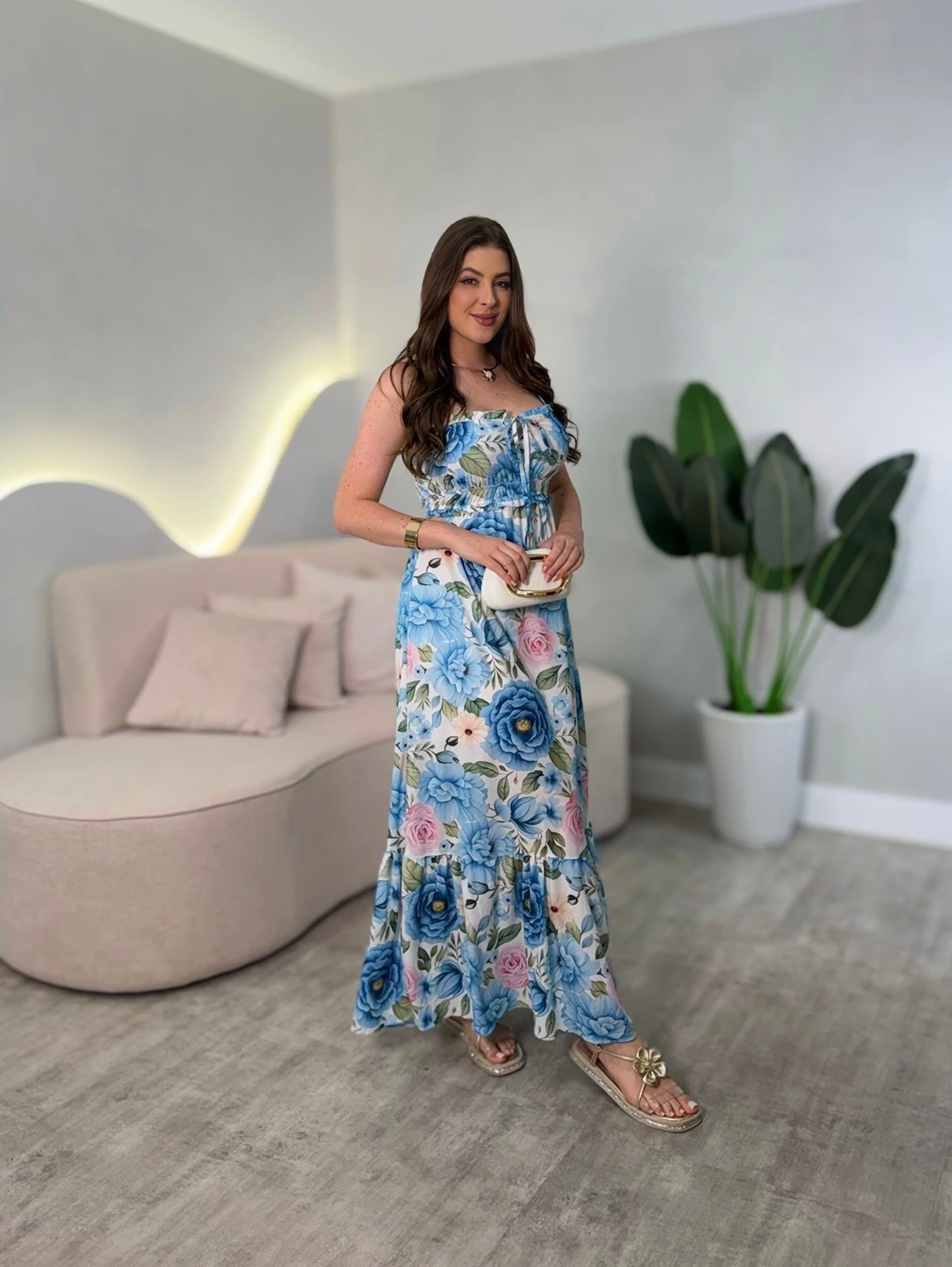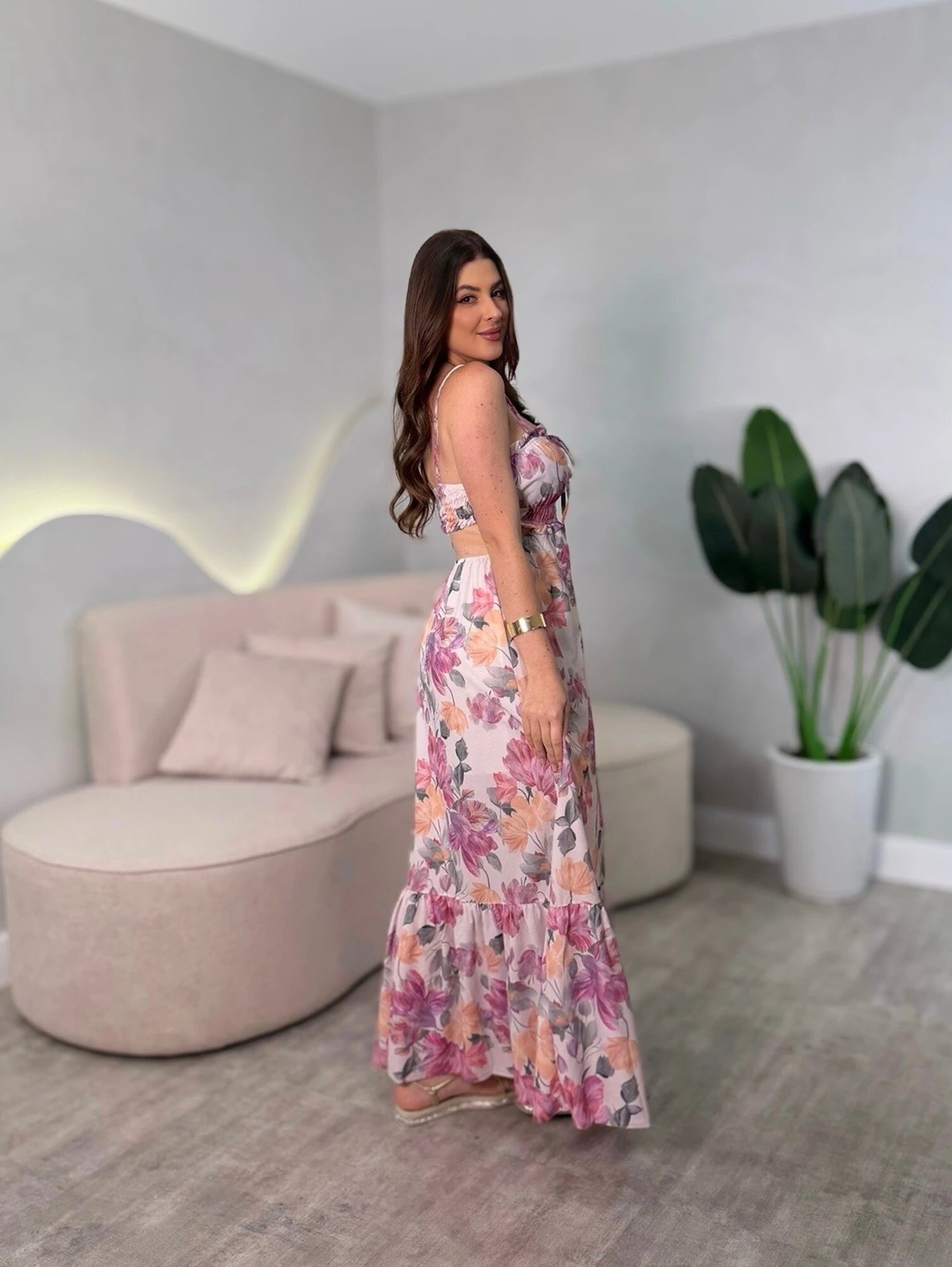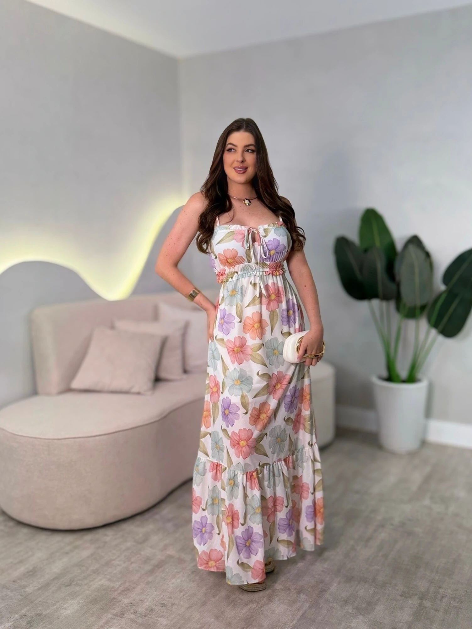Vestido Longo Em Tecido Chiffon, Com Alta Elasticidade e Com Forramento Interno Evitando Transparência.