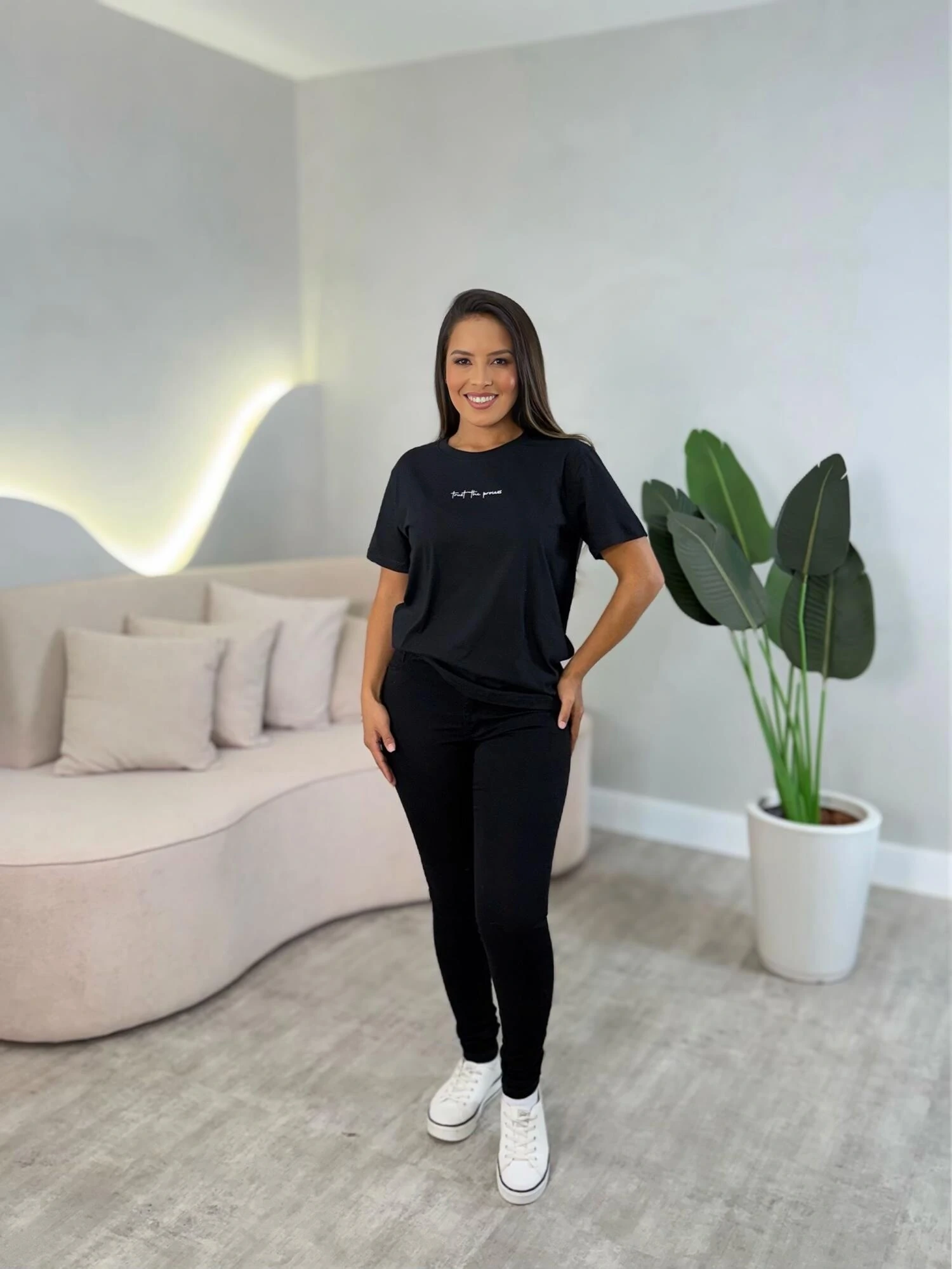 Tamanho Único – veste do manequim 36 ao 42, adaptando-se bem ao corpo graças à sua modelagem versátil. Ideal para quem procura praticidade sem abrir mão do estilo.