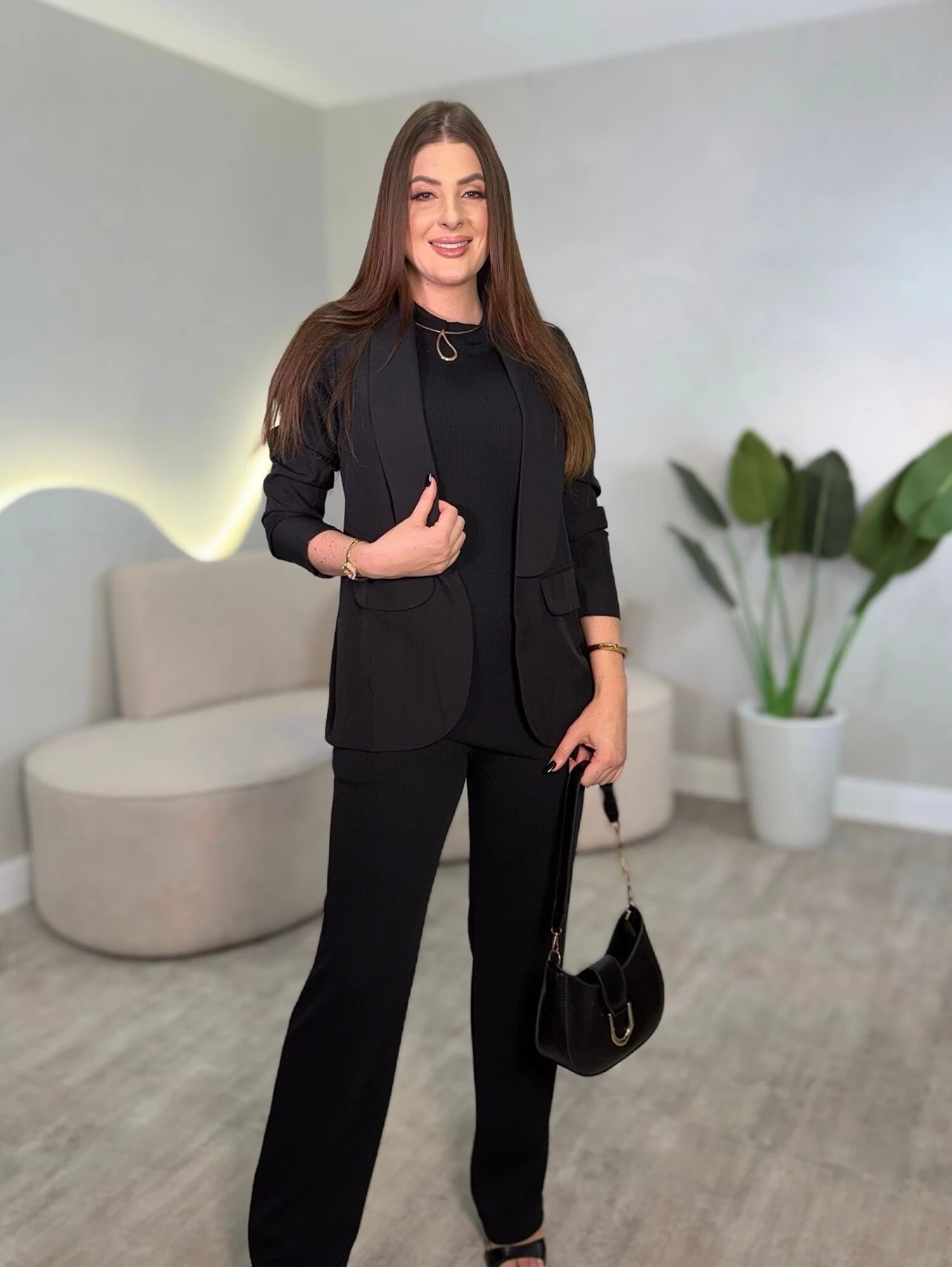 Blazer social com mangas longas, com bolsos fake, modelo aberto. modelagem solta.
