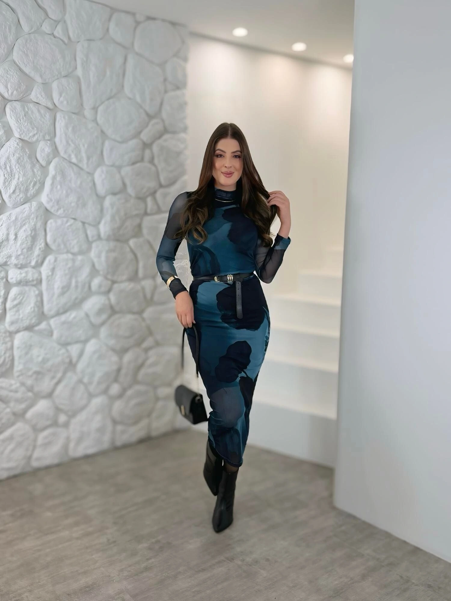 Vestido Longo Com Modelagem Elegante e Moderna.