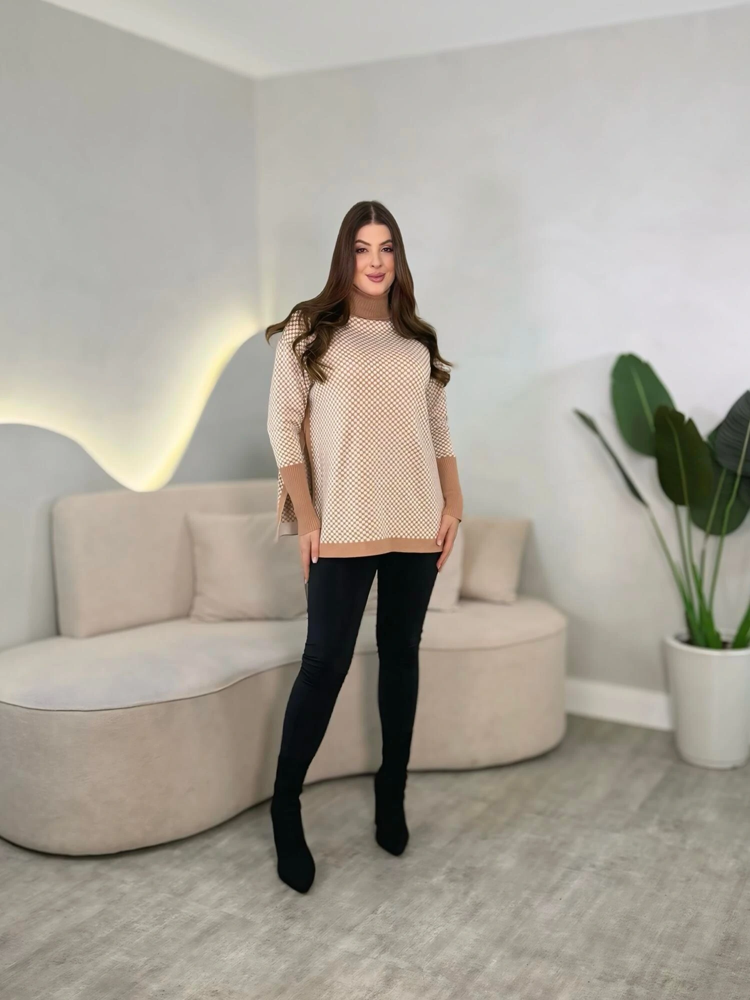 Poncho Xadrez Com Fendas Laterais + Gola Alta. Modelo Com Caimento Largo e Fluído.