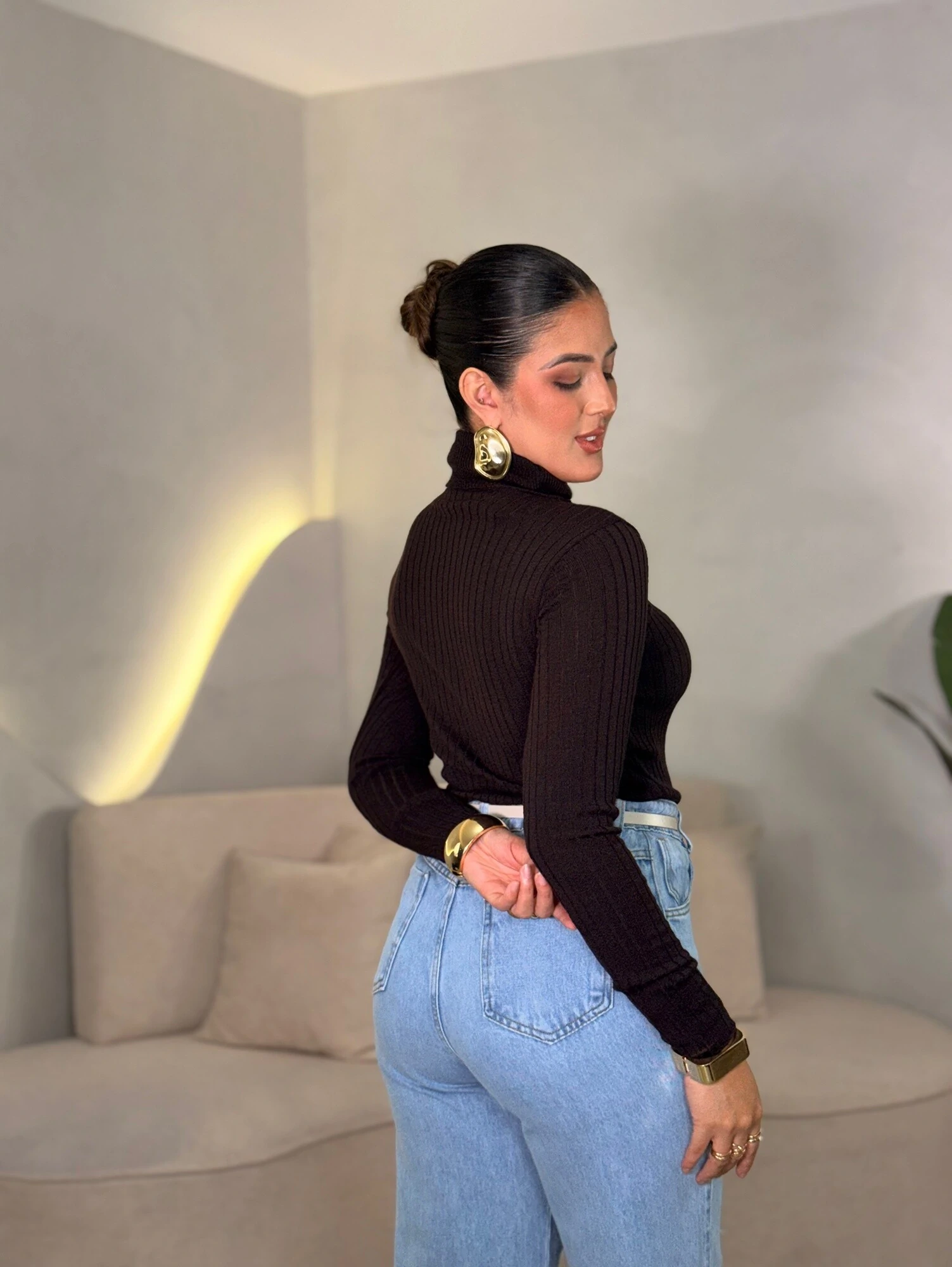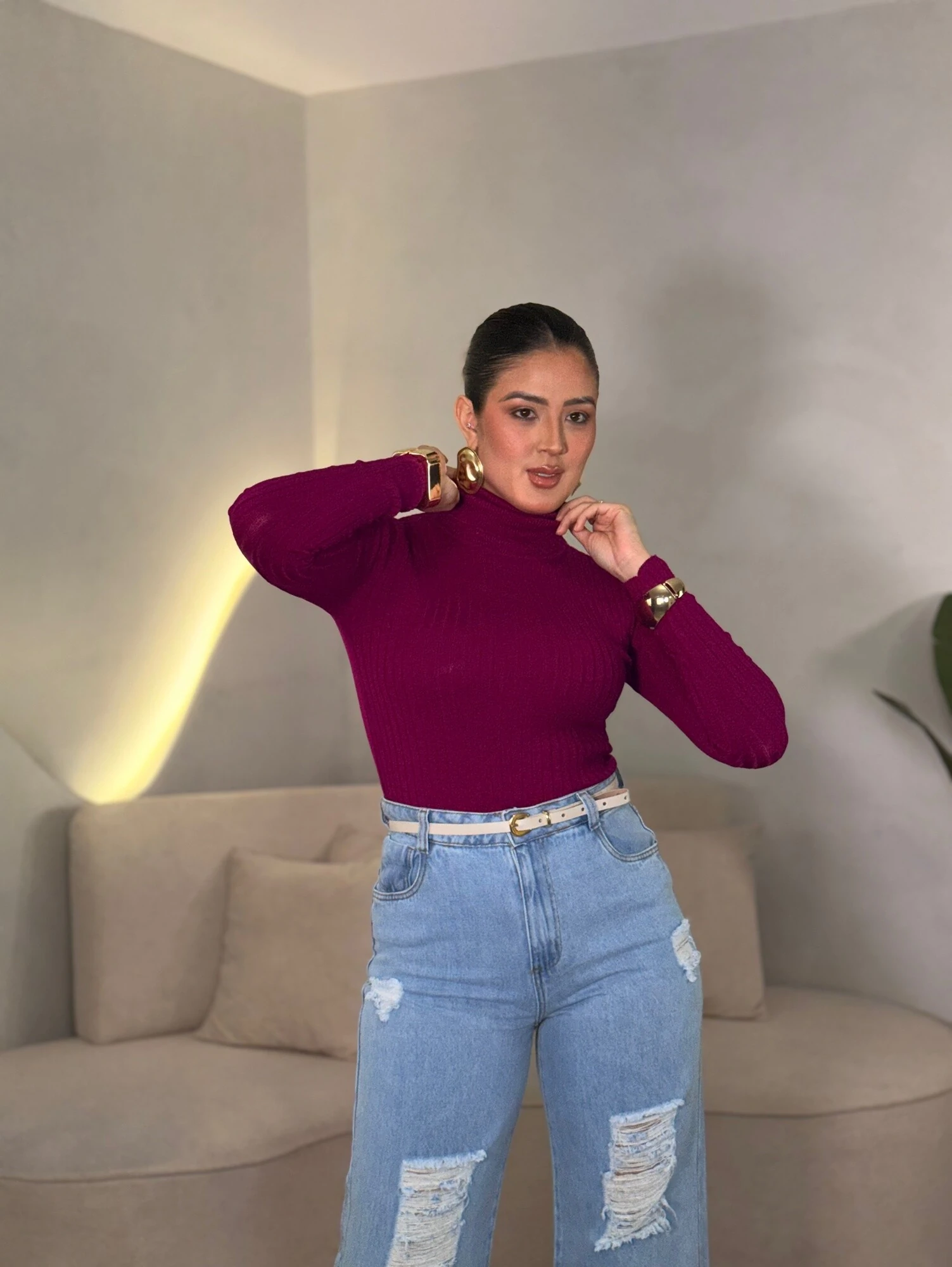 Blusinha Básica Com Gola Alta e Modelagem Mais Justa Ao Corpo.
