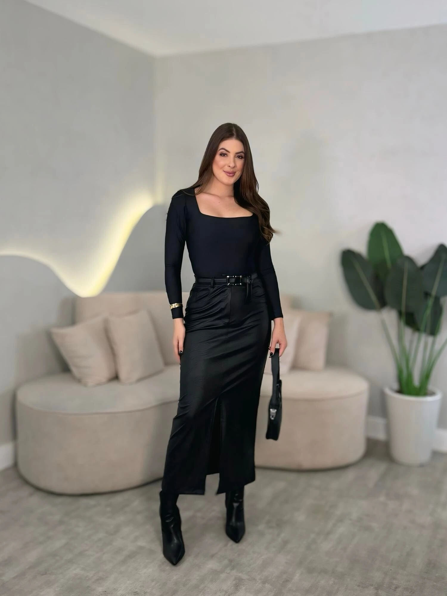 Saia Em Courino, Com Fecho Em Botão Moderno + Zíper Tradicional.