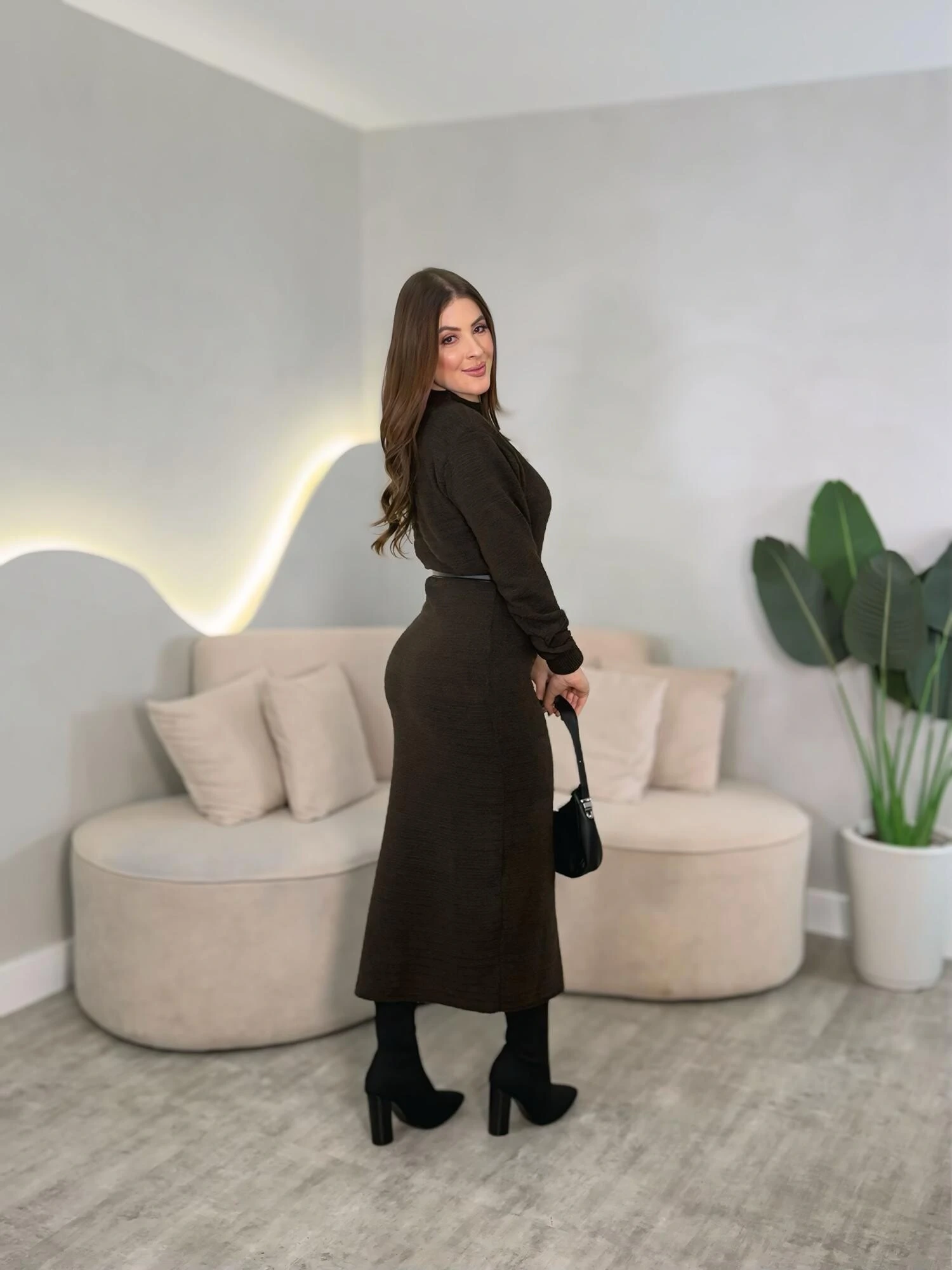 Vestido Longo Em Mousse Com Caimento Sofisticado e Confotável. Modelo Longo Com Fenda Lateral.